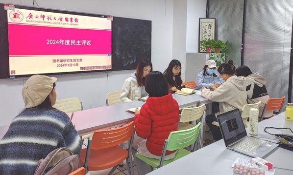 为深入学习贯彻习近平新时代中国特色社会主义思想,巩固深化党纪学习教育成果,提升党员思想政治素养,3月13日下午,图书馆研究生党支部在育才校区图书馆501教室召开2025年组织生活会暨民主评议会,此次会议由支部书记欧燕主持,支部全体成员参加。