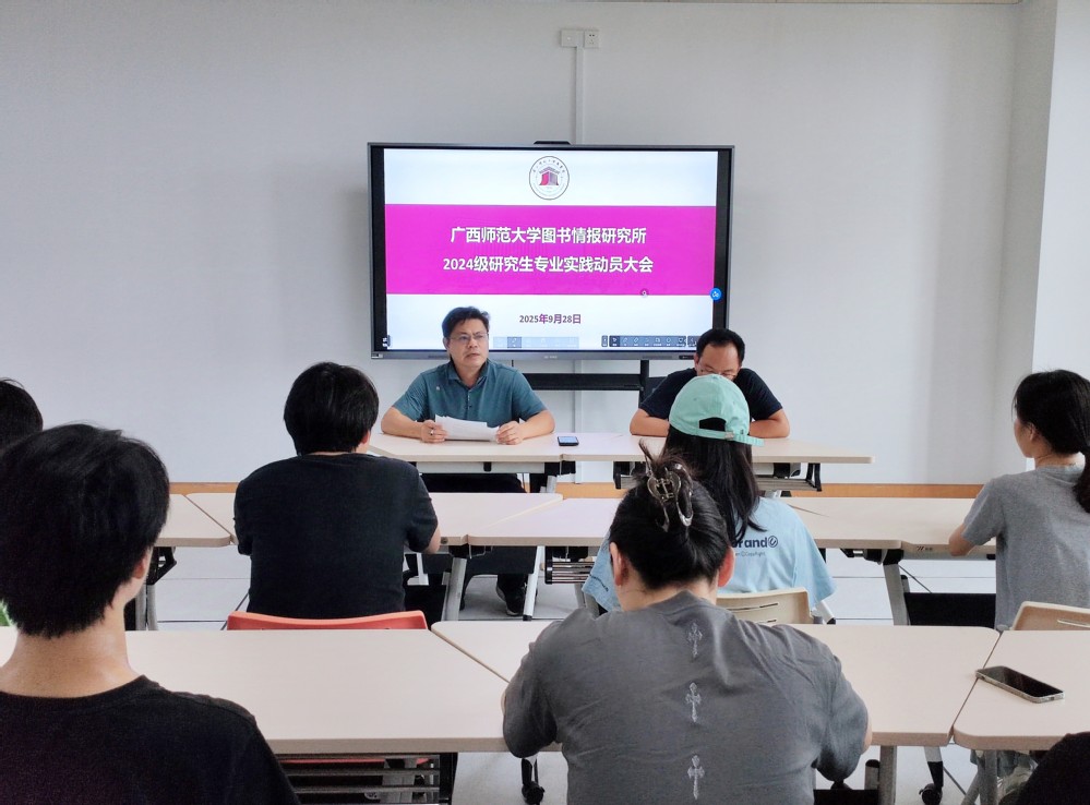 秋光正好启新程,笃行逐梦赴征途。9月28日下午,图书情报研究所在育才图书馆501室召开了2024级研究生专业实践动员大会。图书馆副馆长韦敏出席会议并发表讲话。