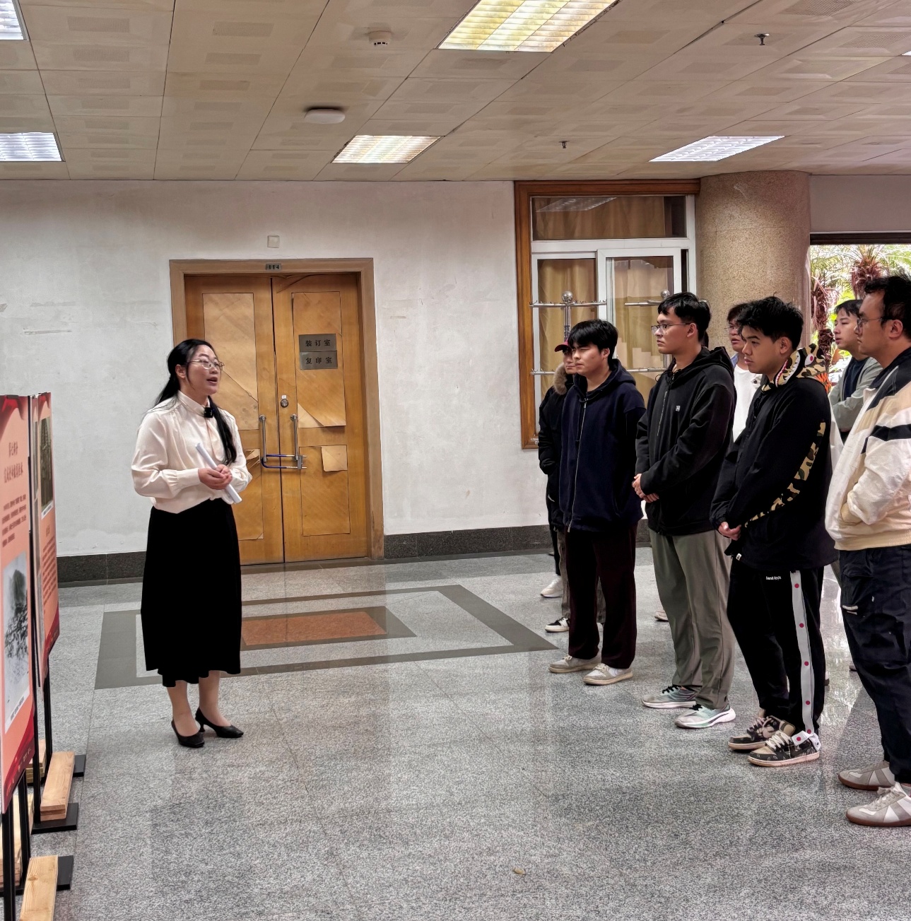 前事不忘,后事之师。刘老师总结道,八路军桂林办事处是中国共产党在南方开展抗日工作的重要堡垒,它的光辉历史有力地展现了中华民族在危难时刻英勇抗争的伟大精神。我们强调铭记历史不是为了延续仇恨,而是为了珍视今日的和平与繁荣,并从过去的苦难中汲取前进的智慧和力量。最后,她呼吁同学们作为图书情报专业的研究生,要继承李克农等先辈的遗志,发扬我党情报工作的光荣传统,增强忧患意识、使命意识、责任意识,不负韶华、砥砺前行。