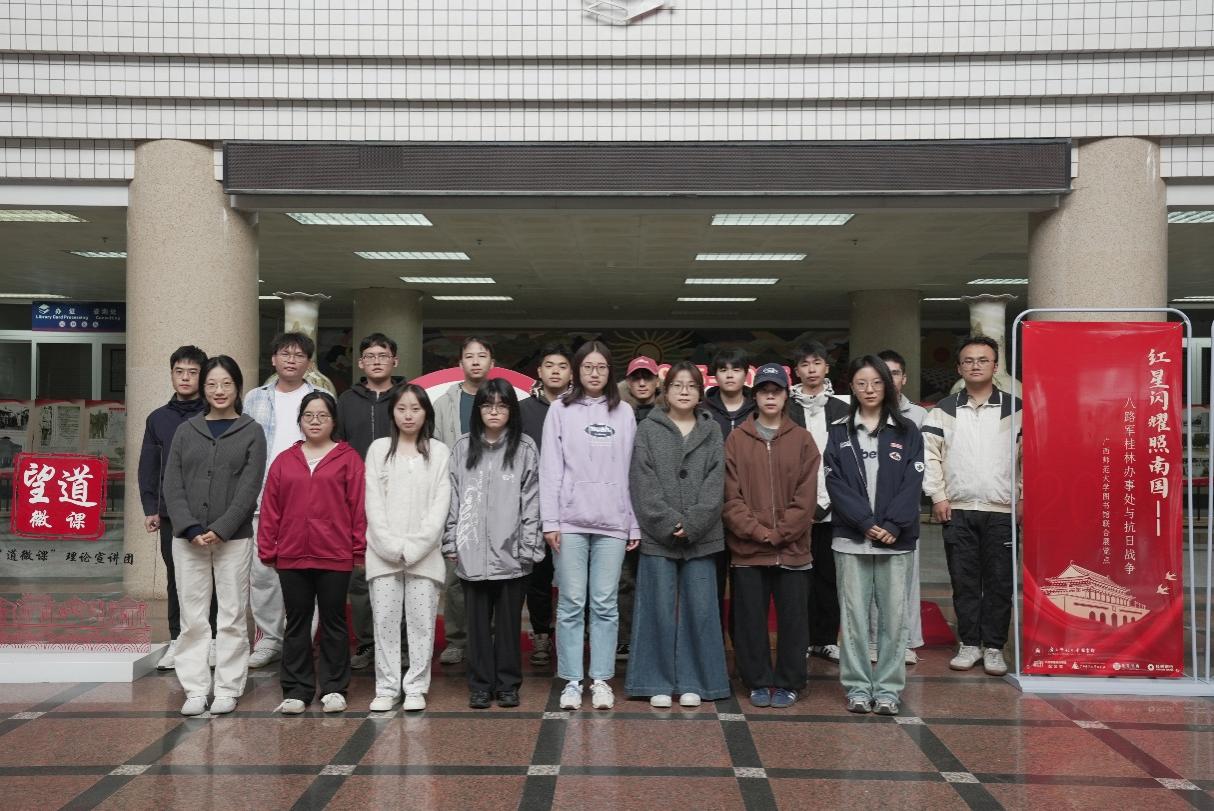 为纪念中国人民抗日战争暨世界反法西斯战争胜利80周年,铭记抗战历史、传承红色基因,10月21日下午,图书馆/图情所联合八路军桂林办事处纪念馆,在育才校区图书馆一楼大厅承办了第一百二十九期“望道微课”理论宣讲活动。图书馆刘卫萍老师以《红星闪耀照南国——八路军桂林办事处与抗日战争》为主题进行了宣讲,图情所2025级全体研究生参加了此次活动。