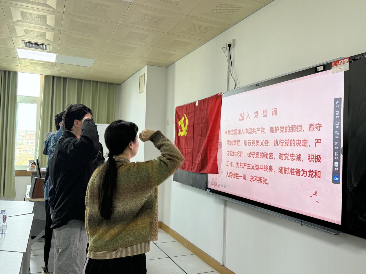 宣誓结束后,预备党员代表匡滔同志作了表态发言,表示将以此次宣誓为新的起点,严格要求自己,在今后的学习和工作中,勇于担当,积极奉献,为党和人民的事业贡献自己的力量。自由发言环节,党员代表李梅同志和党总支委员代表杨颖同志分别发言,李梅同志回顾了入党初心,表达了为党的事业不懈奋斗、终身奉献的坚定决心与信念;杨颖同志提到作为党员要主动提升信息素养与网络辨识力,积极利用网络平台传播正能量、弘扬主旋律,在虚拟世界中同样彰显党性原则、发挥先锋作用。